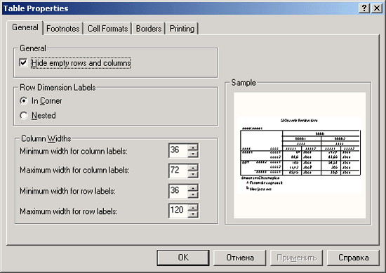 Рис. 4.22: Диалоговое окно Tabe/Looks (Дизайн таблиц)